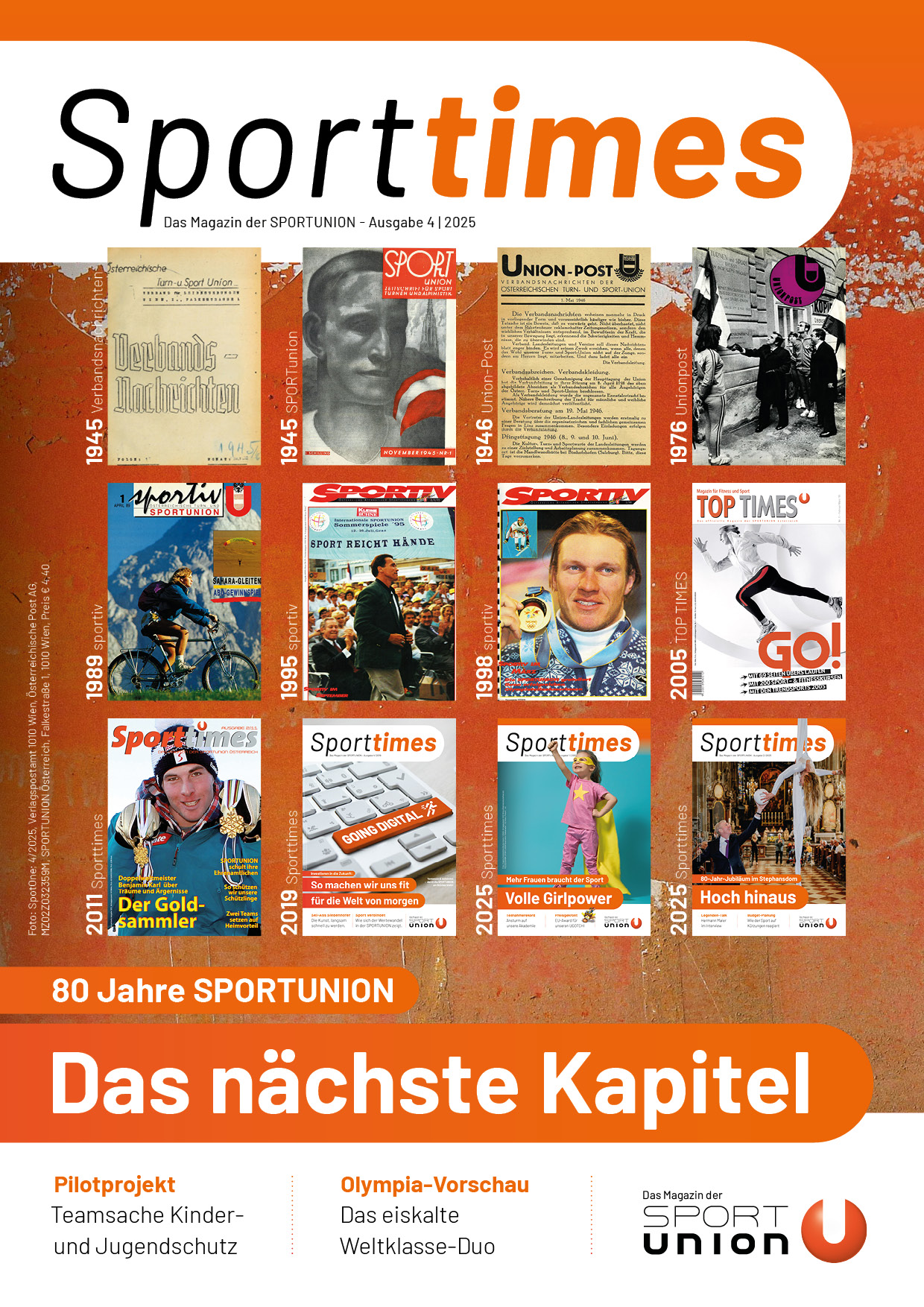 Nach rund 80 Jahren, sechs Magazintiteln und unzähligen bewegenden Geschichten erscheint mit dieser Ausgabe die letzte Sporttimes. SPORTUNION-Präsident Peter McDonald blickt dankbar auf die lange Tradition des Magazins zurück – und voller Vorfreude auf das, was kommt: ein neues Kindermagazin für über 60.000 Volksschulkinder. Es wird Themen aufgreifen, die unser Bewegungsprogramm „UGOTCHI – Punkten mit Klasse“ bereits seit Jahren in den Mittelpunkt stellt und Kinder und Eltern in den Ferien begleiten und zu gemeinsamen Erlebnissen anregen.