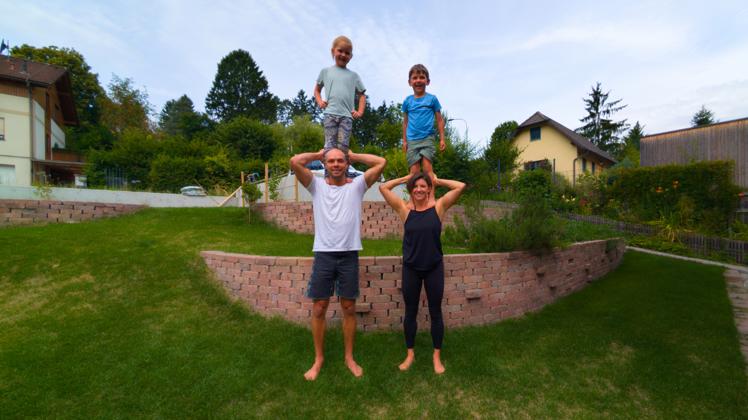 Doch wer sind die beiden, die Bewegung so konsequent in ihr Leben integriert haben? Mag. Gleb Morozov ist Sportler mit Leib und Seele, kritischer Geist – und bekennender Käsehasser („Meine Achillessehne“). Schon als Kind probierte der gebürtige Russe fast alles aus: Ballett („Ich war da der einzige Bub“), Eishockey, Basketball, Turnen und sogar Zehnkampf. „Ich liebe einfach jede Form von Bewegung“, sagt er, während er und Johanna im Garten für Tochter Lida und Sohn Wanja „den Baum“ machen: schulterbreiter Stand, beide Arme ausgebreitet, der gesamte Körper in Spannung, die Kinder klettern auf ihre Beine, hangeln sich an ihren Armen entlang bis hinauf zur Schulter, bevor sie mit einer Saltobewegung den Abgang machen. „Für die beiden war das schon sehr früh etwas komplett Normales“ (Johanna).