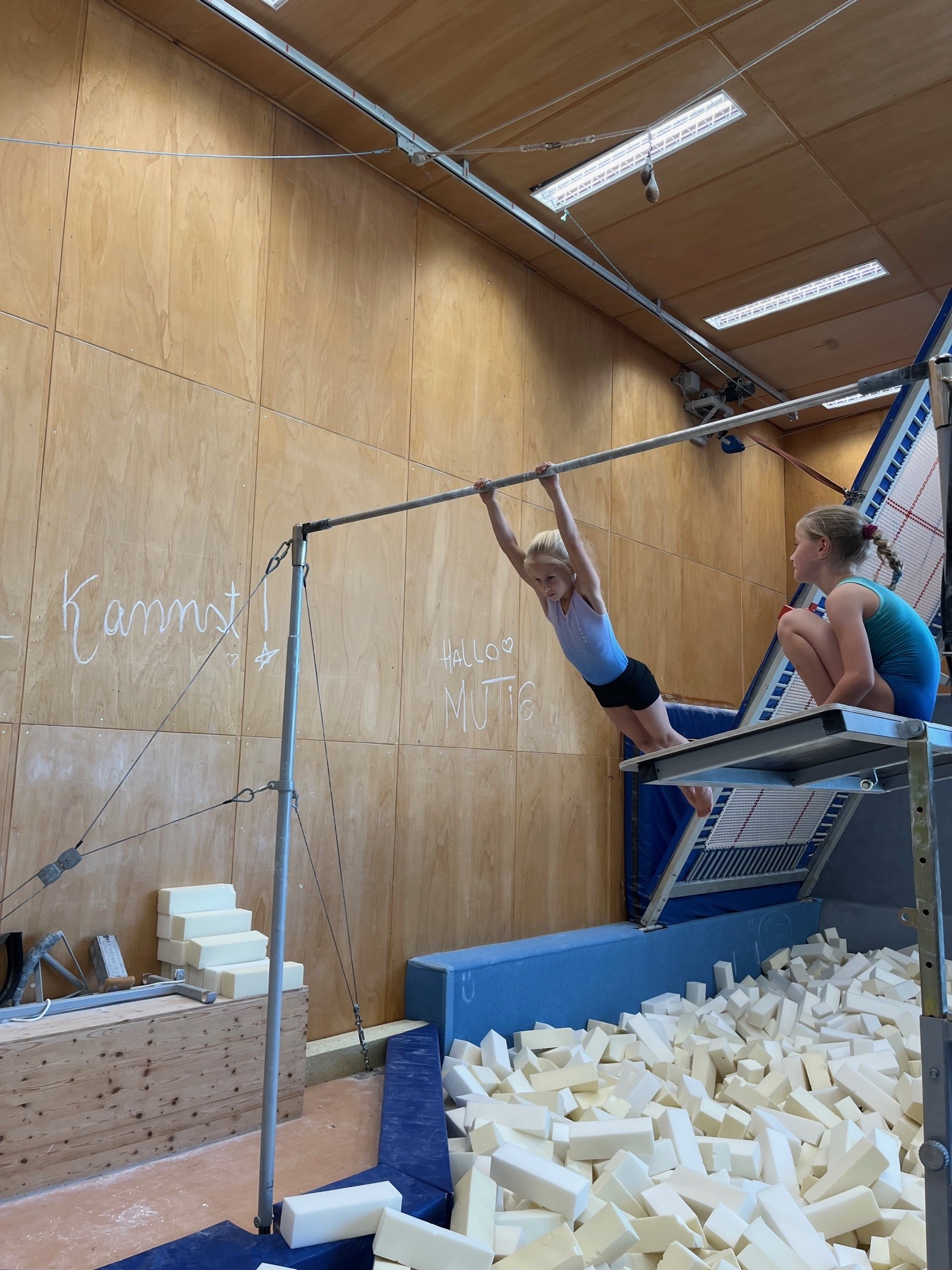 Rund 50 Turner:innen, sowie deren Trainer:innen folgten der Einladung zum „Come together Training“. Nach einem gemeinsamen Aufwärmen wurde fleißig an den Geräten trainiert und vor allem die Schnitzelgrube der Halle genutzt. Besonders schwierige Übungen konnten so an diesem Tag ausprobiert bzw. gefestigt werden.
