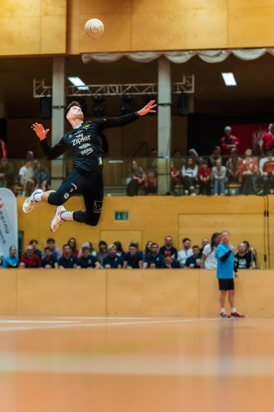 Die Union Tigers Vöcklabruck bleiben das Maß der Dinge im österreichischen Hallenfaustball. Mit einem klaren 4:0 (11:3, 13:11, 11:4, 11:5)-Erfolg gegen den TV Wohnplan Enns verteidigten die Tigers beim Final3 in der Bezirkssporthalle Rohrbach-Berg ihren Titel und krönten sich zum dritten Mal in Folge zum Hallen-Meister. Seit 2018 holte Vöcklabruck damit sechs von acht möglichen Hallentiteln – eine beeindruckende Erfolgsserie. Dabei hatte Enns am Samstag noch mit einem furiosen 4:0 gegen den amtierenden Feldmeister FBC Linz AG Urfahr für Aufsehen gesorgt. Entsprechend selbstbewusst ging der Außenseiter ins Finale. Doch von Beginn an übernahmen die Tigers das Kommando. Vor allem Karl Müllehner drückte dem Spiel mit druckvollen Services und präzisen Angriffen seinen Stempel auf. Der erste Satz war rasch entschieden. Im zweiten Durchgang zeigte Enns seine Klasse und erspielte sich beim Stand von 10:7 sogar drei Satzbälle. Doch Vöcklabruck blieb ruhig, startete eine Aufholjagd und drehte den Satz noch. „Eine unserer Stärken ist es, auch wenn wir zurückliegen, zu wissen, was unsere Qualitäten sind und einen Satz noch einmal umdrehen zu können“, erklärte Vöcklabruck-Abwehrspieler Paul Part. „Wir haben gewusst, dass wir schwer zu schlagen sind, wenn wir unsere Leistung bringen.“ Mit der 2:0-Führung im Rücken spielten die Tigers befreit auf. Müllehner traf aus nahezu allen Lagen, Enns fand kaum Lösungen im Spielaufbau. Im vierten Satz hielten die Ennser zunächst dagegen, ehe Vöcklabruck mit einer Serie von sechs Punkten endgültig davonzog. Ein Ass von Müllehner besiegelte schließlich den Titel-Hattrick.