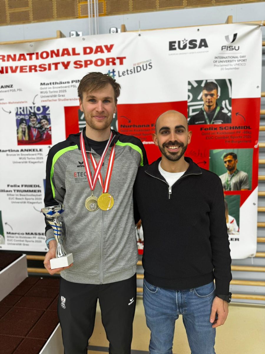 Bei den akademischen Meisterschaften, die auch zur österreichischen Rangliste zählen, räumten die Fecht-Union Linz-Fechter:innen voll ab und sicherten sich zwei Turniersiege und eine Bronzemedaille. Am Samstag waren die Damen am Start. Schon nach der Vorrunde waren Luise Elmer und Leonore Praxmarer (beide Fecht-Union Linz) mit den Plätzen 2 und 4 stark gesetzt. Im weiteren Verlauf besiegten die beiden Degenfechterinnen ihre Gegnerinnen teilweise klar. Leider unterlag die Heeressportlerin Leonore im Halbfinale mit 10:11 knapp und sicherte sich damit den ausgezeichneten 3. Gesamtrang. Die Medizinstudentin Luise Elmer stieß bis ins Finale vor, wo sie dann Leonores Bezwingerin Julia Pizzuti (UWK Graz) klar mit 13:5 besiegte und sich somit den Turniersieg und den Titel der akademischen Meisterin 2026 sicherte.