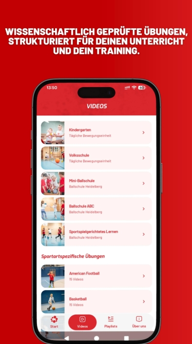 Herzstück der App sind die klar strukturierten Kategorien „Kindergarten“, „Volksschule“, „Mini-Ballschule“, „Ballschule ABC“, „Sportartspezische Übungen“ und „Sportspielgerichtetes Lernen“. Sie ermöglichen Pädagog:innen, Trainer:innen und Eltern eine gezielte Auswahl nach Altersstufe und Entwicklungsstand der Kinder. Peter McDonald: “So erwerben Kinder systematisch motorische Basiskompetenzen, die sportartenübergreifend wirken und eine ideale Grundlage für spätere Spezialisierungen bilden.” Innerhalb dieser Bereiche finden sich nämlich zahlreiche Videos zu zentralen motorischen und sportlichen Grundfertigkeiten, darunter: