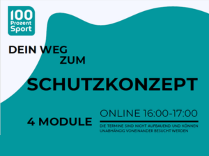 Ein gelebtes Schutzkonzept trägt maßgeblich dazu bei, Gewaltprävention als festen Bestandteil in Sportorganisationen zu verankern️.  Vor diesem Hintergrund setzt sich 100 % SPORT – Das österreichische Zentrum für Genderkompetenz und Safe Sport in einer 4-teiligen Veranstaltungsreihe praxisnah und kompakt mit den zentralen Bausteinen von Kinder- und Athlet:innenschutzkonzepten im Sport auseinander.