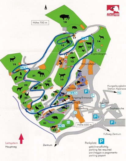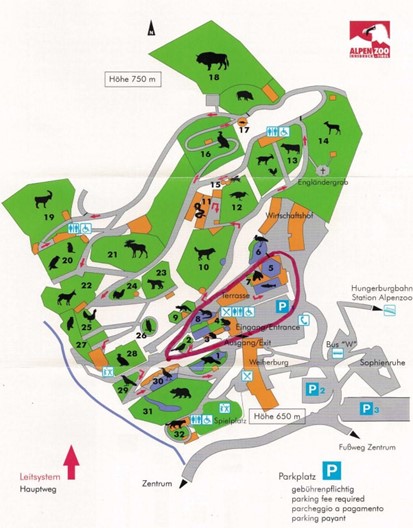 Gebührenpflichtige Parkplätze beim Alpenzoo