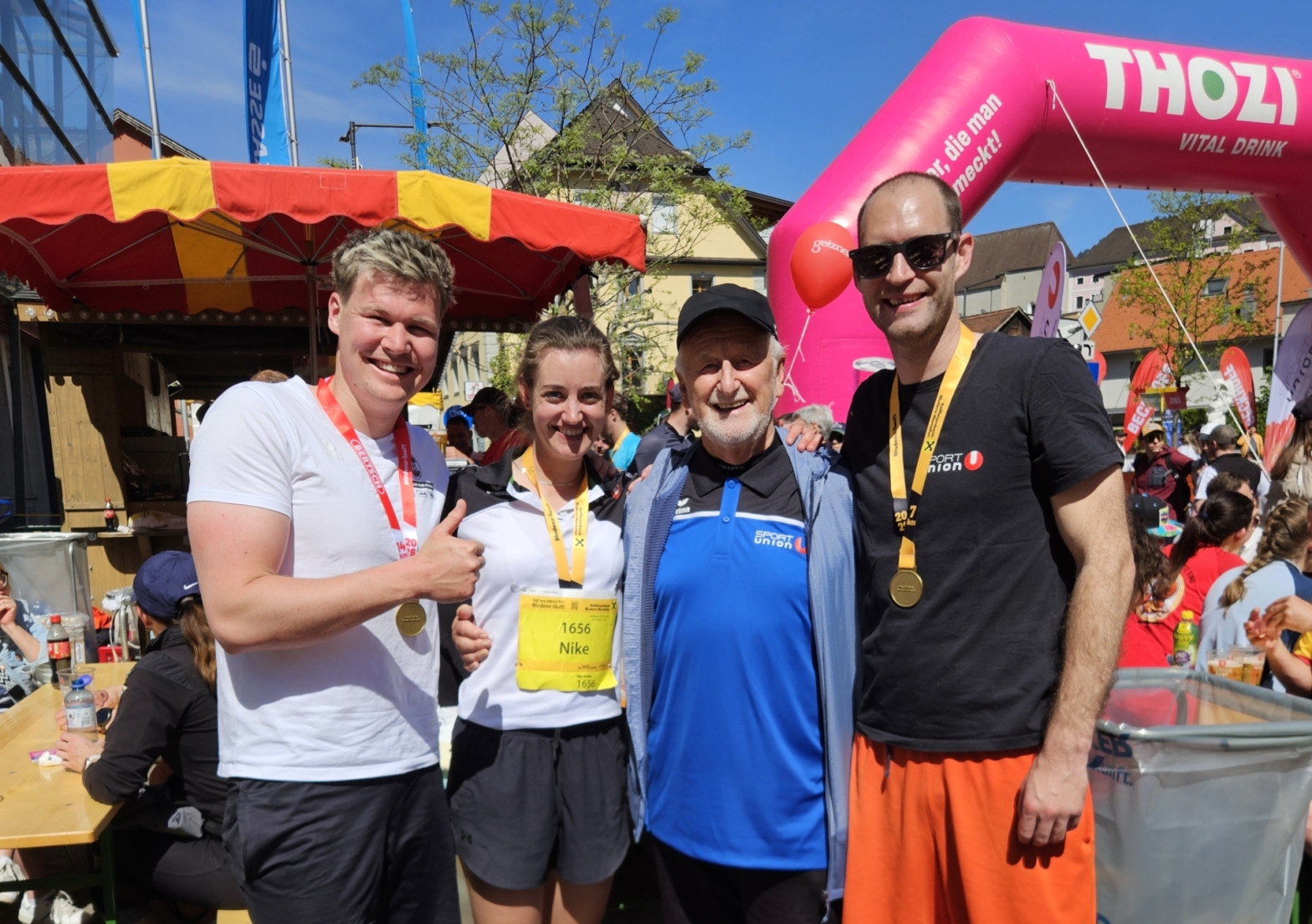 Auch neben der Strecke war die SPORTUNION sichtbar vertreten, Ehrenmitglied Pepi Straßer unterstützte lautstark als Streckenmotivator und sorgte für zusätzliche Stimmung entlang der Laufroute.