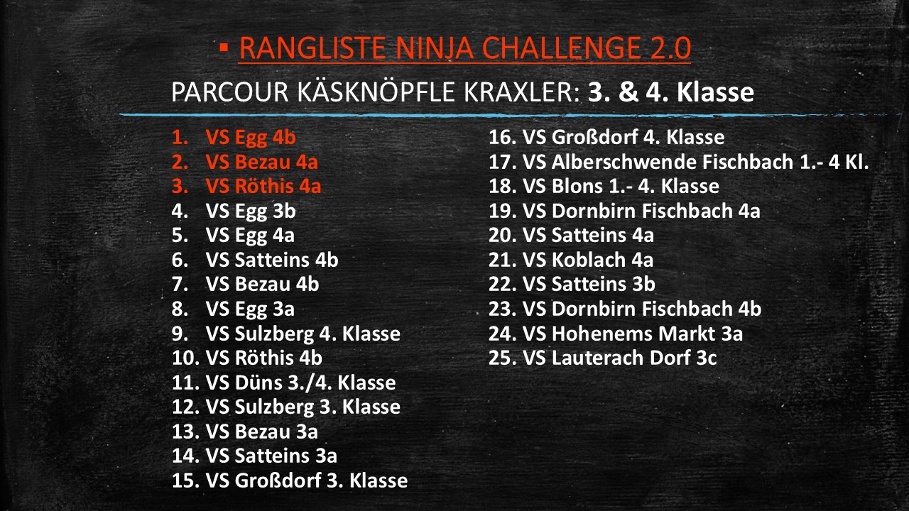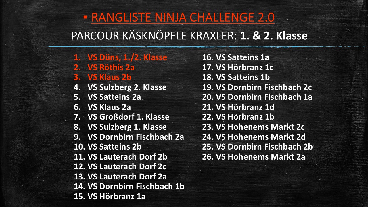 WIE? Da die Challenge ein Klassenbewerb ist, zählt die erreichte Bestzeit aller Schüler/innen je Parcour innerhalb des obenstehend definierten Zeitraums (5 Wochen) für die Endwertung. Nur die Bestzeit jeder/s Schüler/in (je Parcour) wird in das Wertungsblatt eingetragen. (Wichtig: Voreingestelltes Zeitformat beachten!). Das Wertungsblatt (Excel, keine Fotos o.ä.) muss vollständig ausgefüllt bis spätestens 5. Dezember 2025 per Mail an n.jordan@sportunion-vlbg.at übermittelt werden.